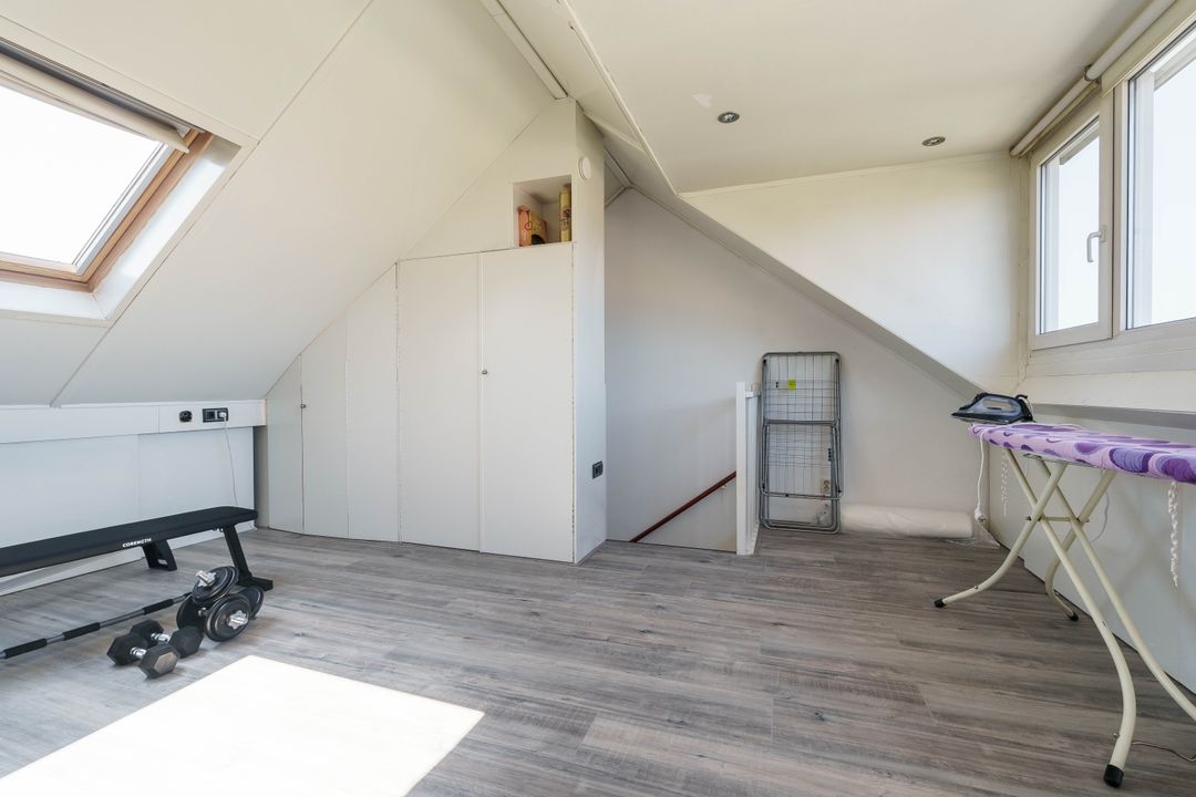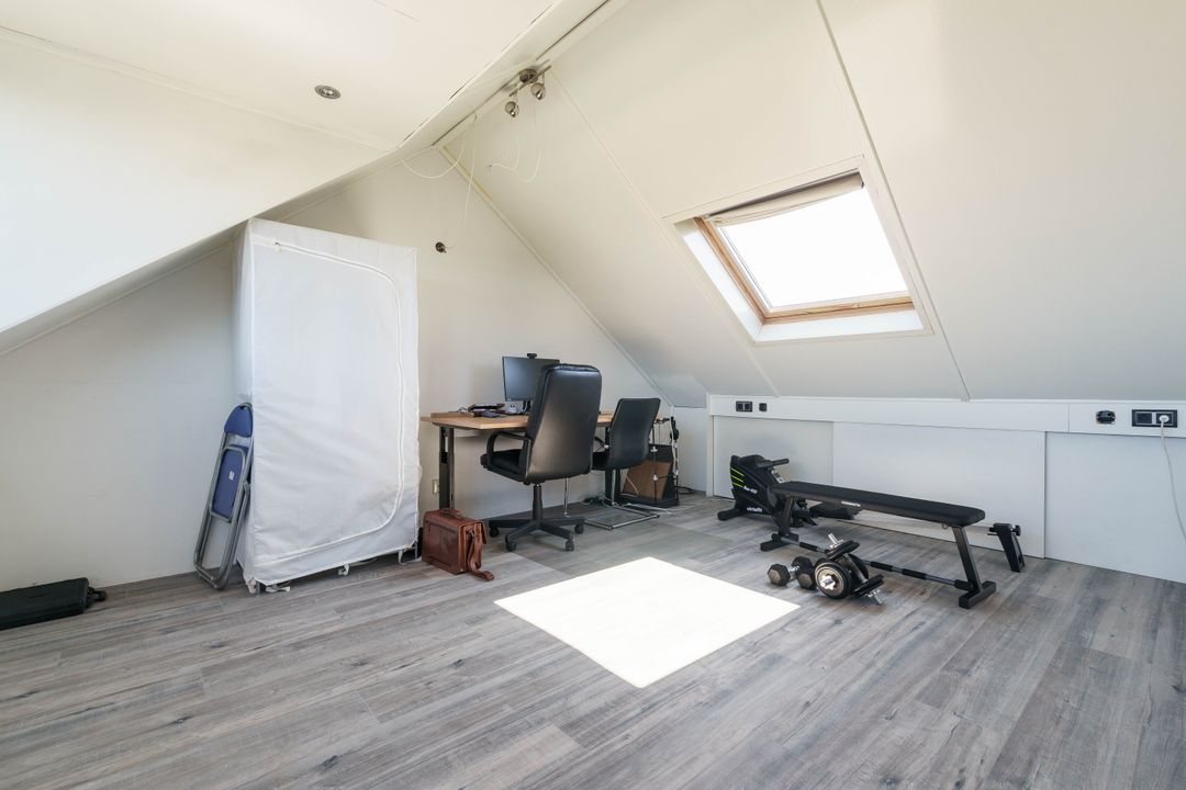 Vaste trap naar flinke zolderruimte met dakkapel. De afwerking is goed, in 2020 is er een laminaat gelegd. Deze ruimte kan goed gebruikt worden als 4e slaapkamer of werkkamer. Achter de knieschotten zit veel bergruimte.