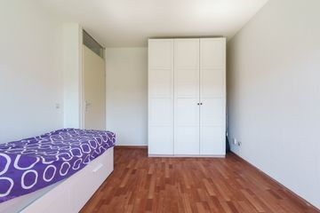 Overloop met toegang naar totaal 3 in grote variërende slaapkamers. Alle slaapkamers zijn volledig te verduisteren dankzij rolluiken aan de buitenzijde. Op de vloer ligt laminaat.