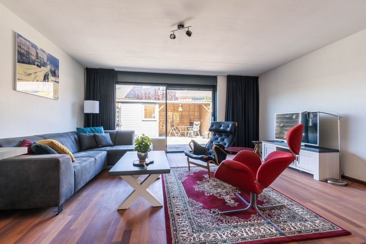 Energiezuinige middenwoning in een groene omgeving. Het huis heeft in totaal 4 slaap/werkkamers, een ruime keuken, een achtertuin met een overkapping en een achterom. Aan de voorzijde kijk je uit op een grasveld met daarin fruitbomen. Door de uitbouw aan de achterzijde heeft de woning maar liefst 115 m² aan leefruimte.