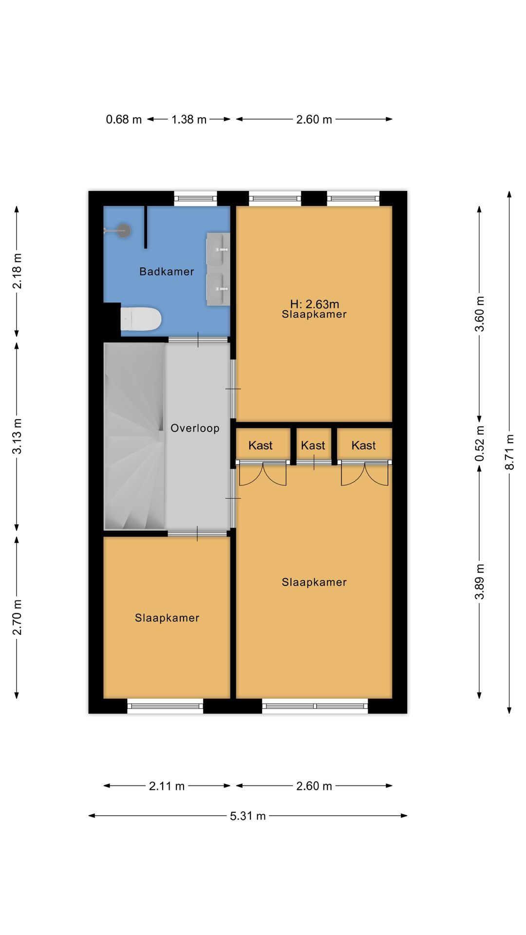 De tweede verdieping heeft drie slaapkamers. De master bedroom is erg sfeervol en heeft een vaste kastenwand. De moderne badkamer is compleet met een inloopdouche, dubbele wastafel en tweede toilet.
