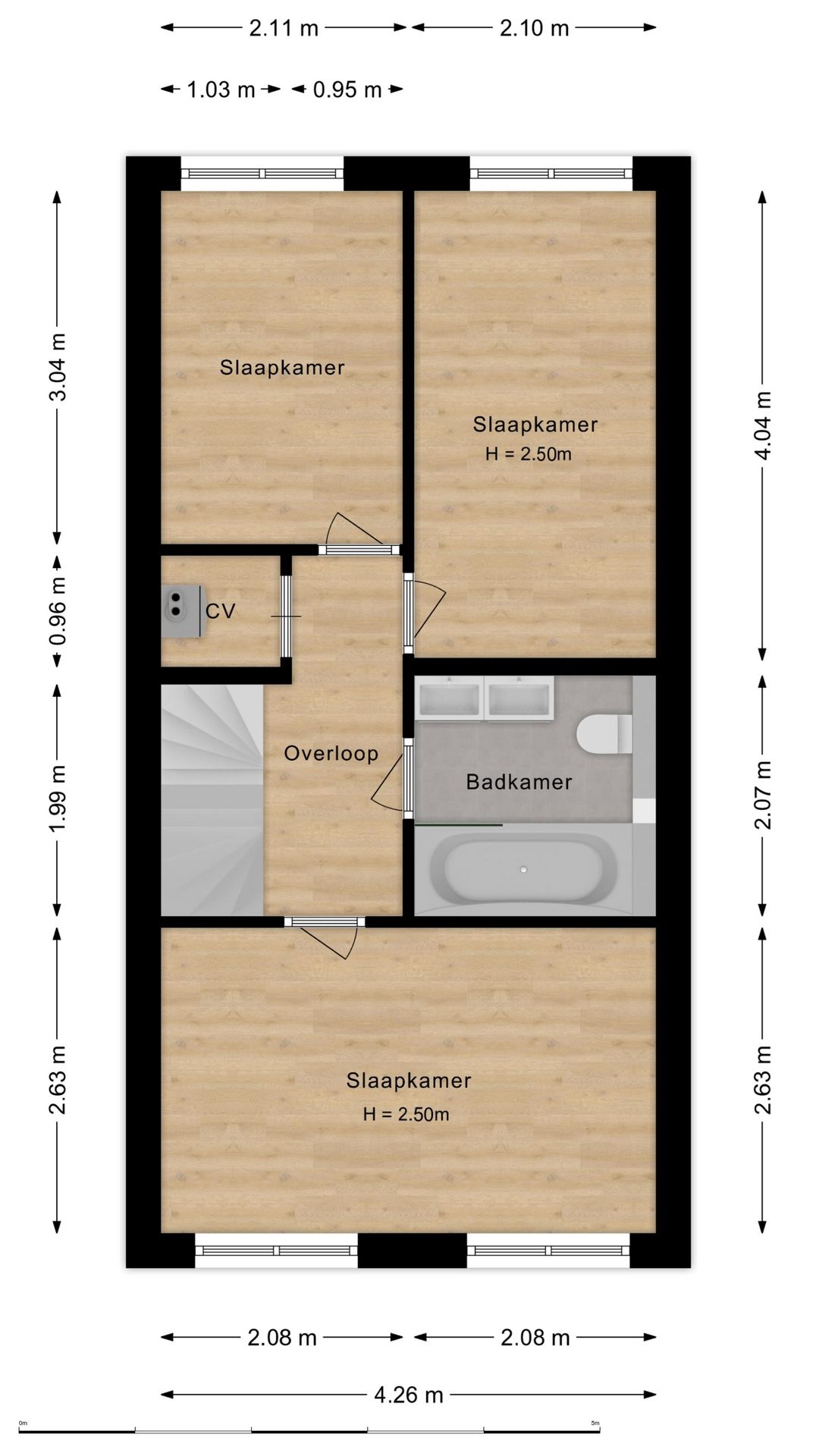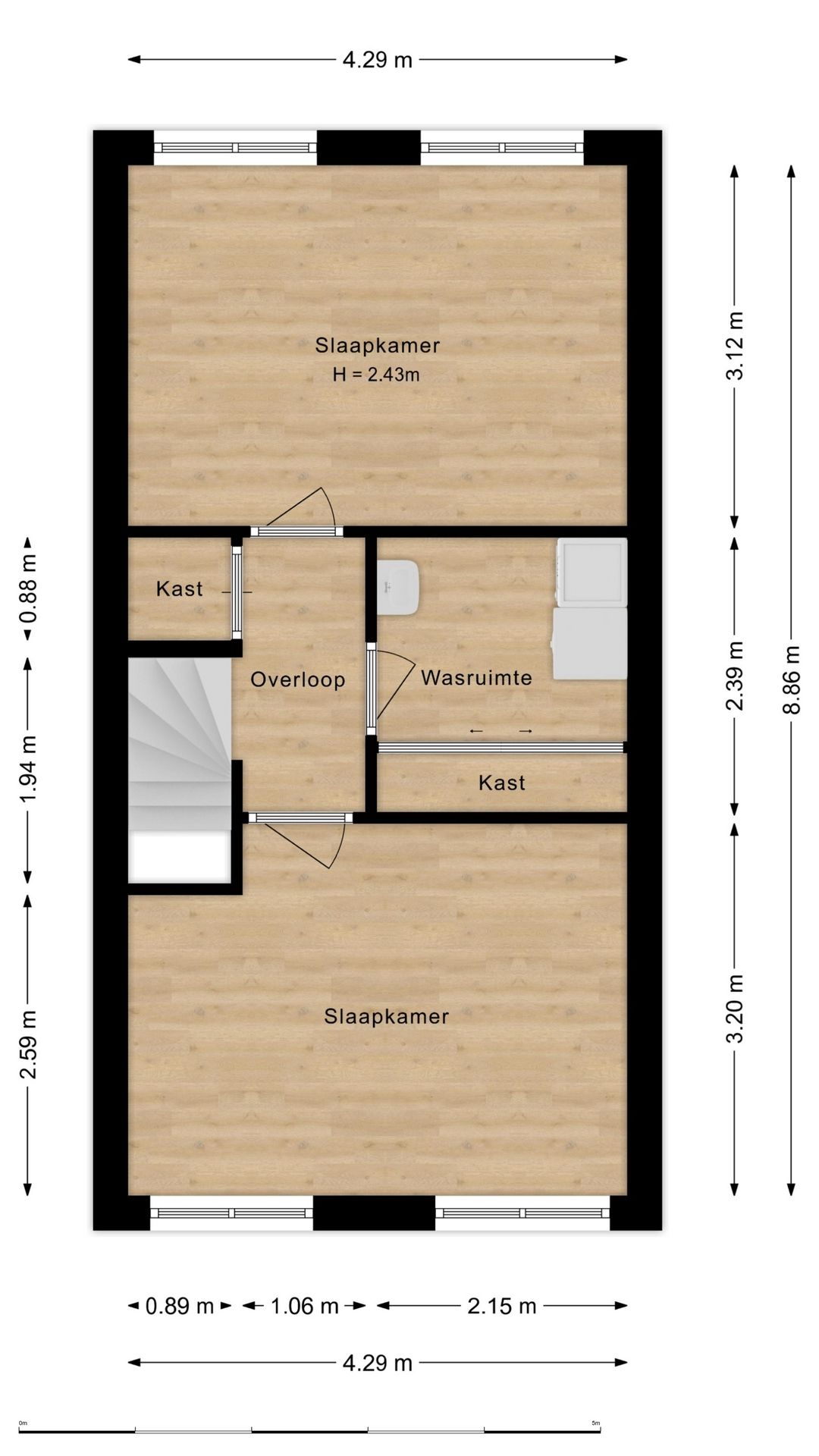 Op de tweede verdieping bevinden zich een apart washok en nog twee ruime slaapkamers, waardoor deze woning u veel flexibiliteit biedt. Ideaal voor gezinnen met kinderen of voor mensen die graag een extra werk- of hobbyruimte willen hebben.