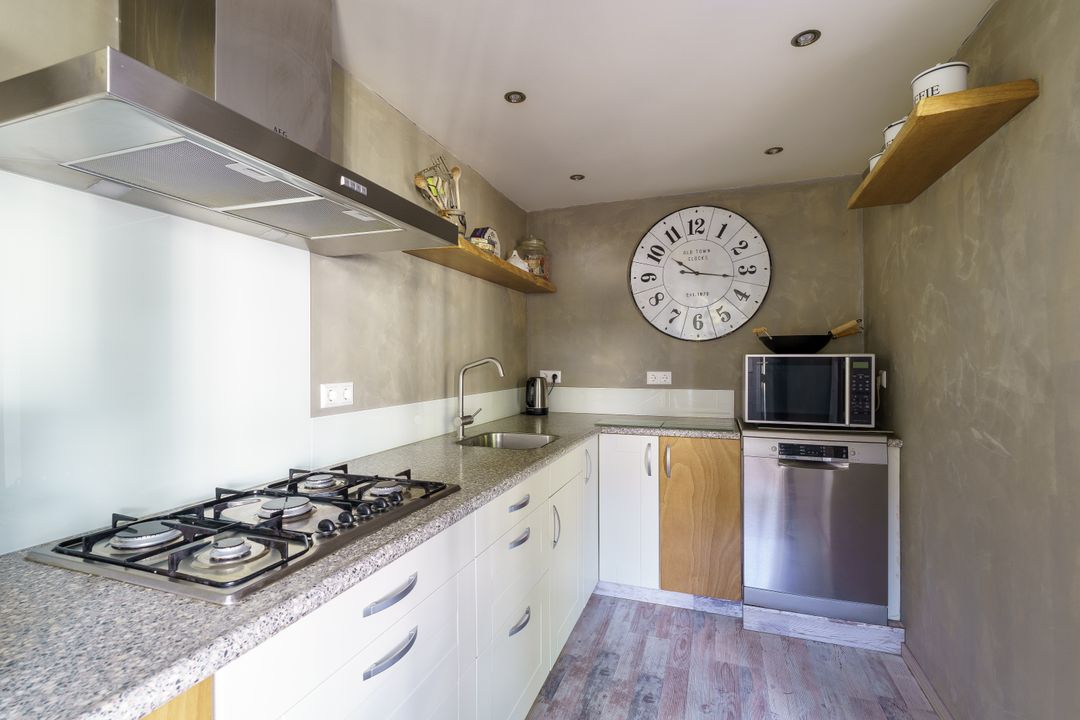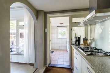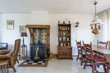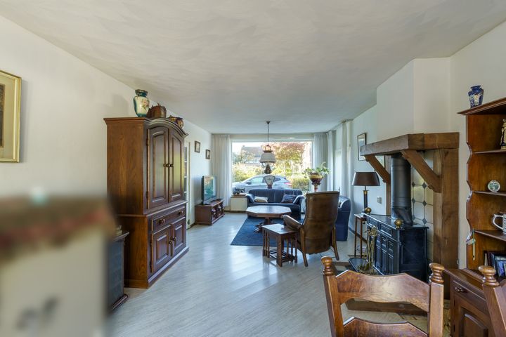 Entree met garderobe en toilet. Fraaie glazen deur richting de woonkamer. Midden in de woonkamer staat een prachtige houtkachel. De half open keuken is vernieuwd in 2020 en ingericht met inbouwapparatuur. Handig is de doorgang naar de bijkeuken met aansluiting voor de wasmachine en de achterdeur richting de tuin.