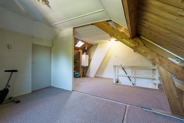 Flinke zolderkamer met bergruimte en opstelling CV. Hier is nog een 4e slaapkamer te creëren.