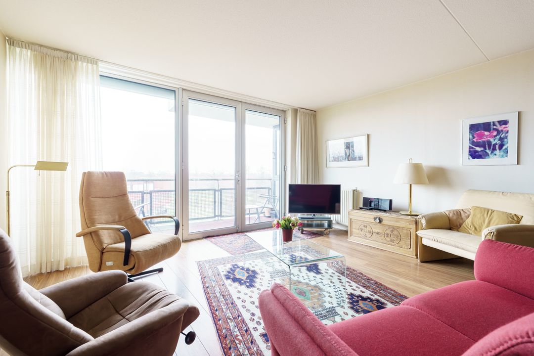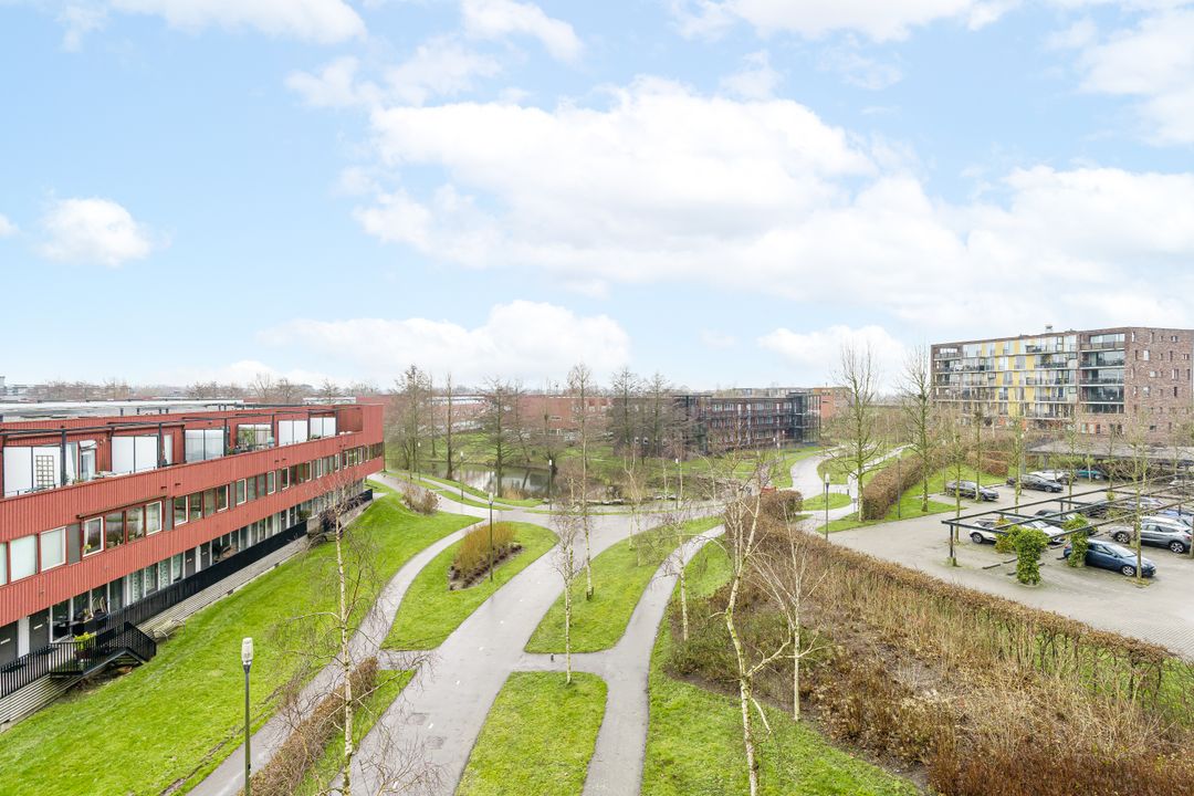 Ruim en licht 3-kamerappartement met een zonnig balkon, lift en vrij uitzicht op veel groen en water in de Stadstuinen van Nieuwland.
