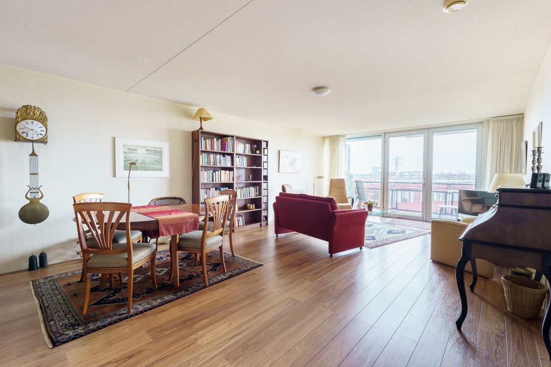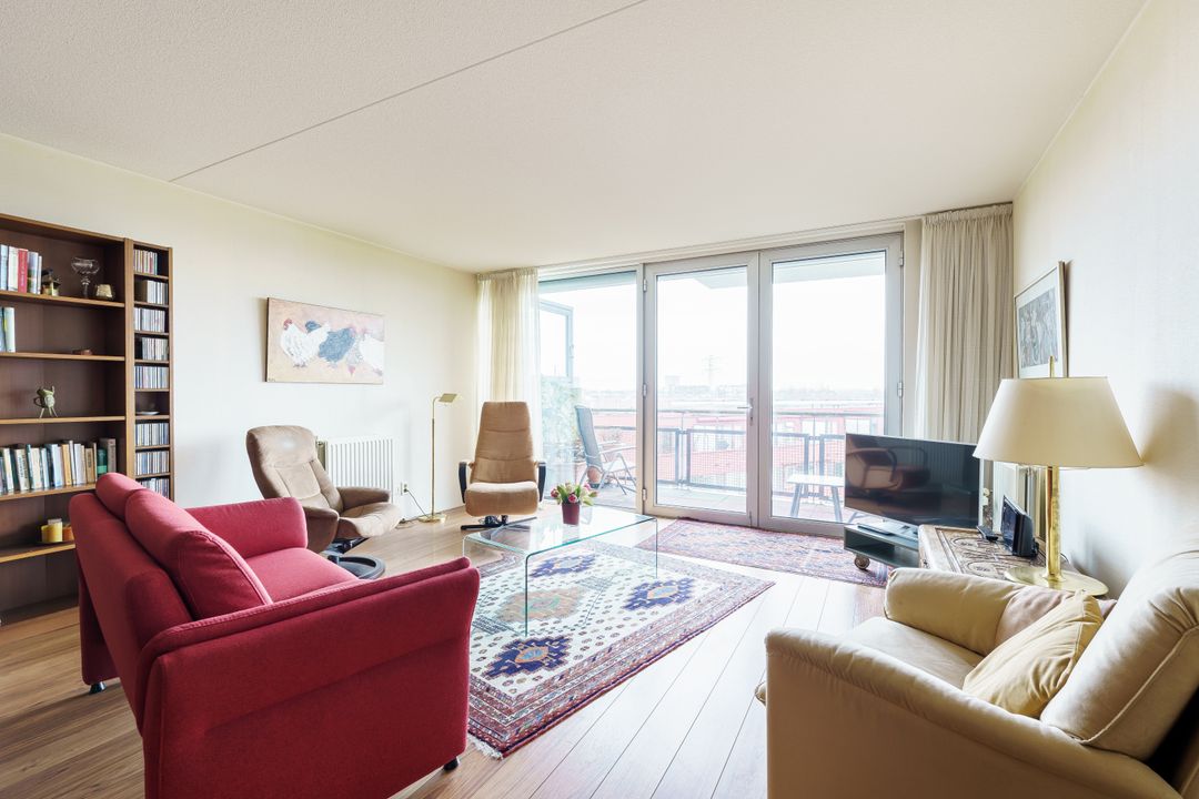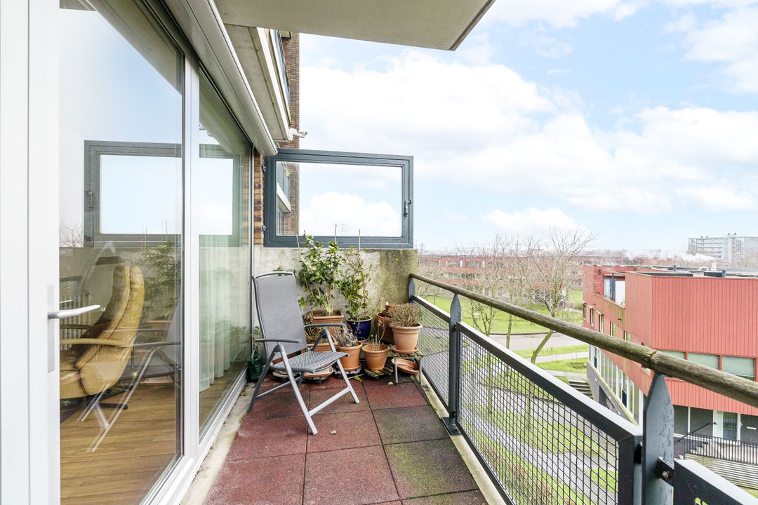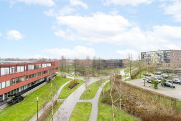 Via twee openslaande deuren kom je op het balkon met zicht over de wijk. De open keuken in hoekopstelling is voorzien van diverse inbouwapparaten, zoals een vaatwasser en oven.