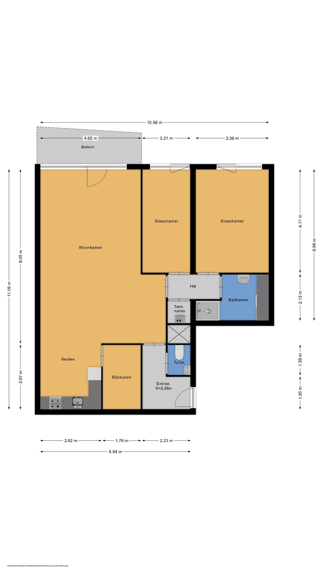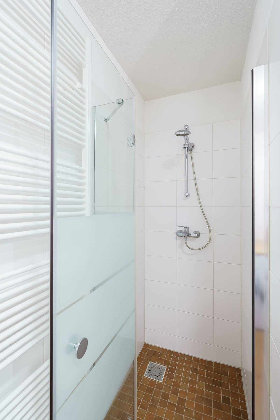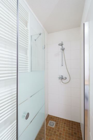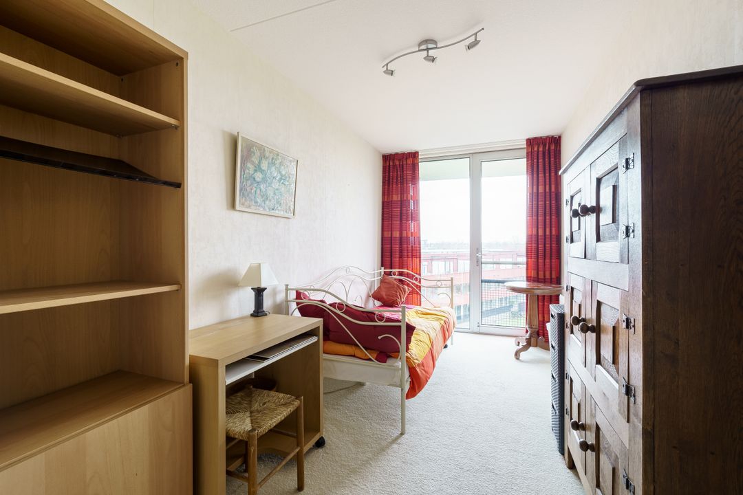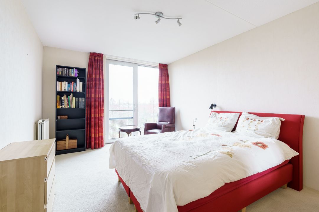 Aangrenzend ligt een bijkeuken. Via de tussenhal bereik je twee in grootte variërende slaapkamers, beide met een Frans balkon. De badkamer is uitgerust met douche, wastafel en was- en droogmachineaansluitingen. Verder is er een aparte kast met de Cv-ketel en een WTW-installatie.