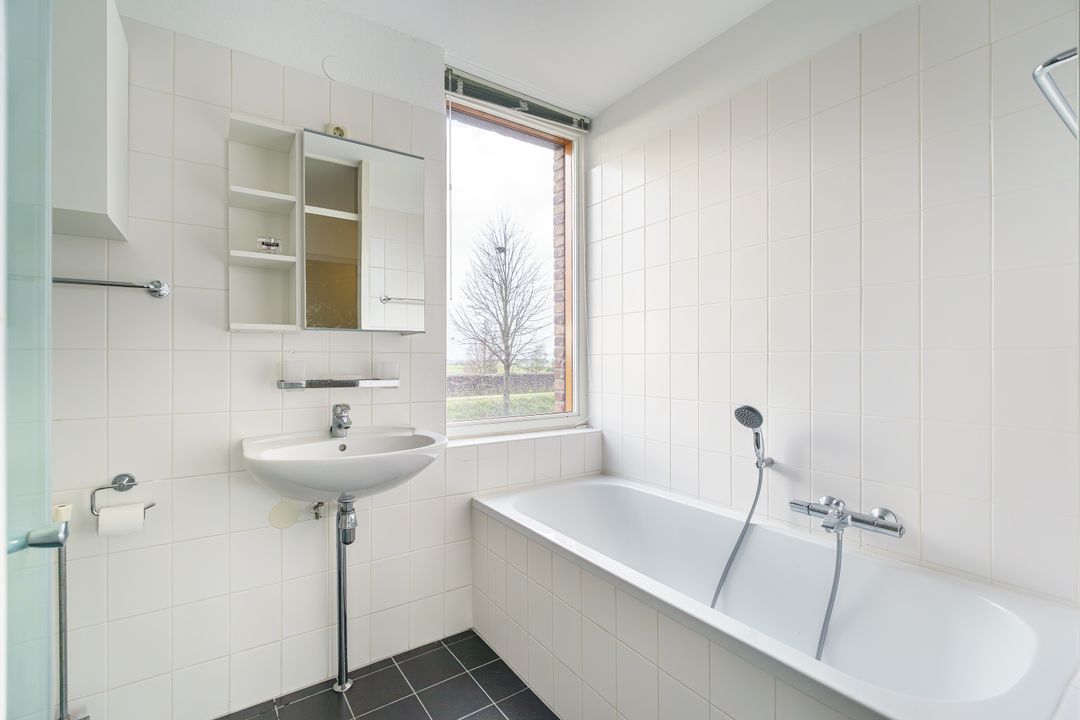 Je stapt binnen in een ruime hal die toegang geeft tot alle vertrekken. Hier vind je de nette badkamer (met ligbad, douche, toilet en wastafel), een separate toiletruimte en een praktische inpandige berging met aansluitingen voor de wasmachine en droger en volop kastruimte. Ook is er een aparte kast met de Cv-installatie.