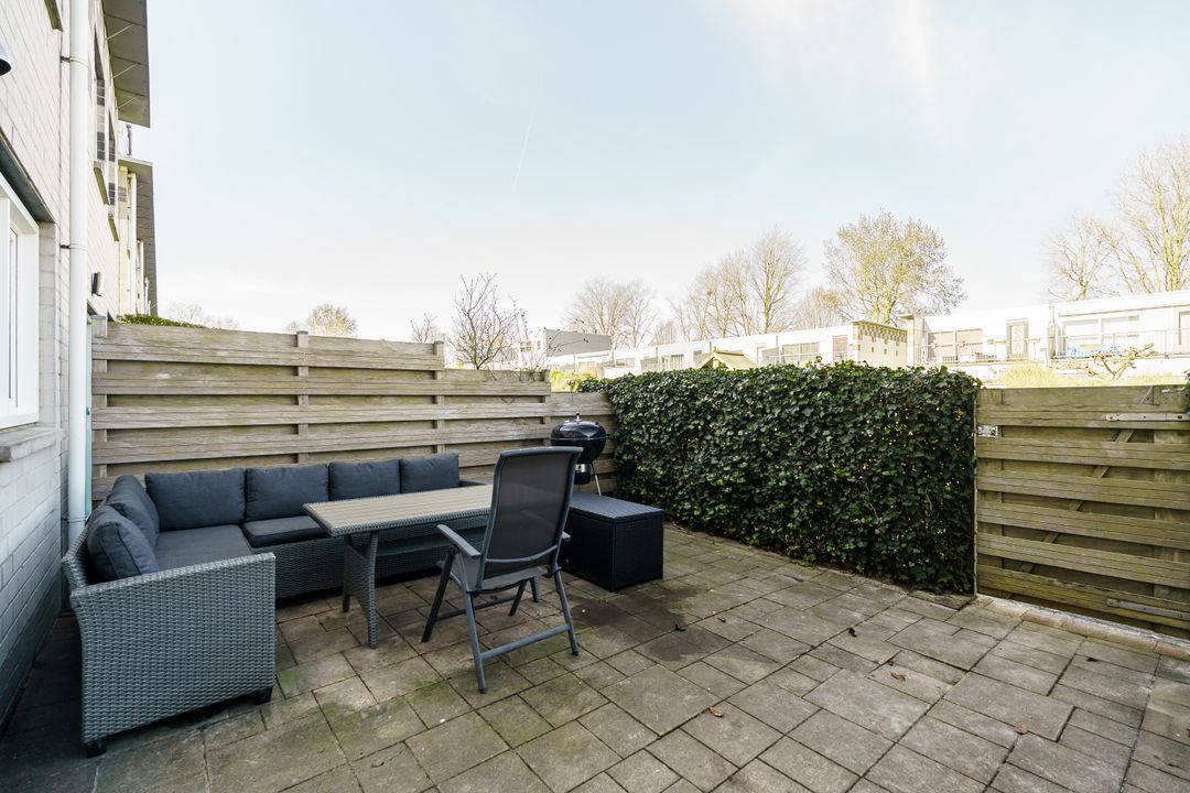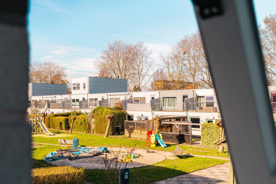 De woning beschikt over een fijne voortuin waar je heerlijk beschut zit. Wat deze woonplek extra bijzonder maakt, is de ligging aan een groene, autoluwe binnenspeelplaats. Hier kunnen kinderen zorgeloos buiten spelen terwijl jij vanuit de keuken een oogje in het zeil houdt. Een veilige en ontspannen leefomgeving voor het hele gezin.