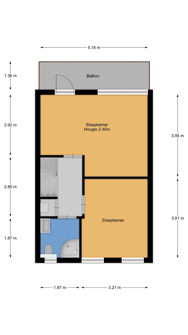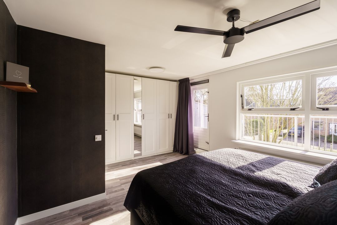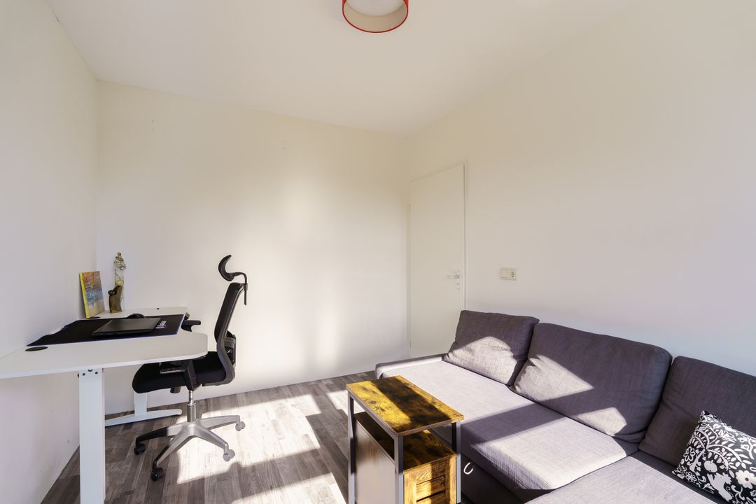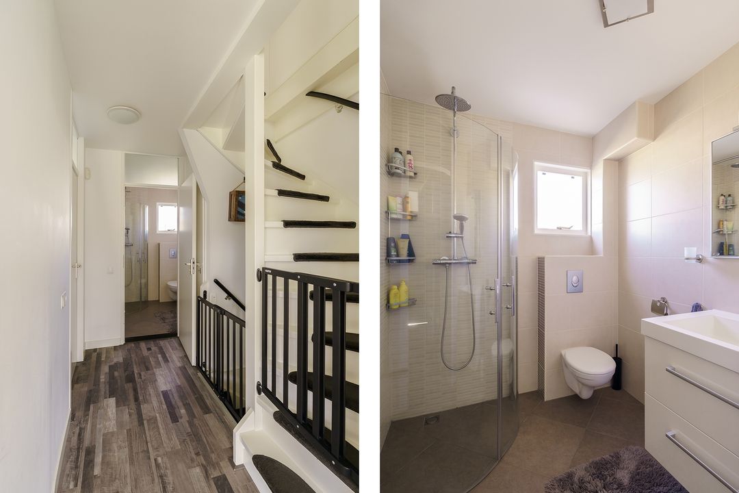 Op de eerste verdieping vind je een overloop, een slaapkamer aan de voorzijde en een royale slaapkamer aan de achterzijde, die eenvoudig op te splitsen is in twee kamers. Vanuit deze kamer heb je toegang tot een zonnig balkon op het zuiden van circa 7,3 m². De moderne badkamer op deze verdieping is uitgerust met een douche, toilet en wastafel.