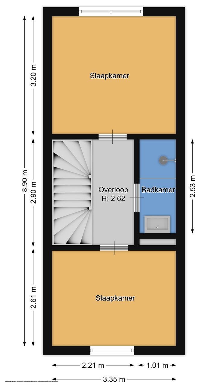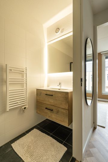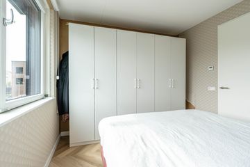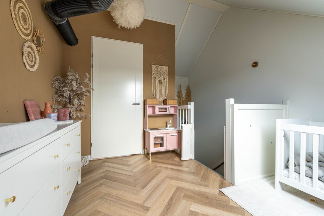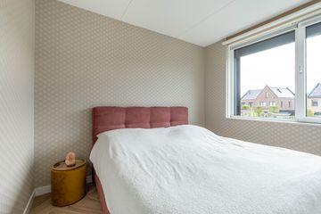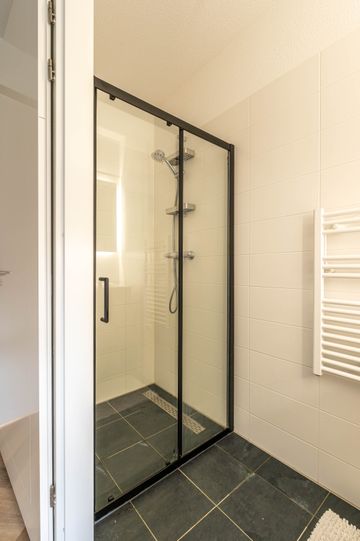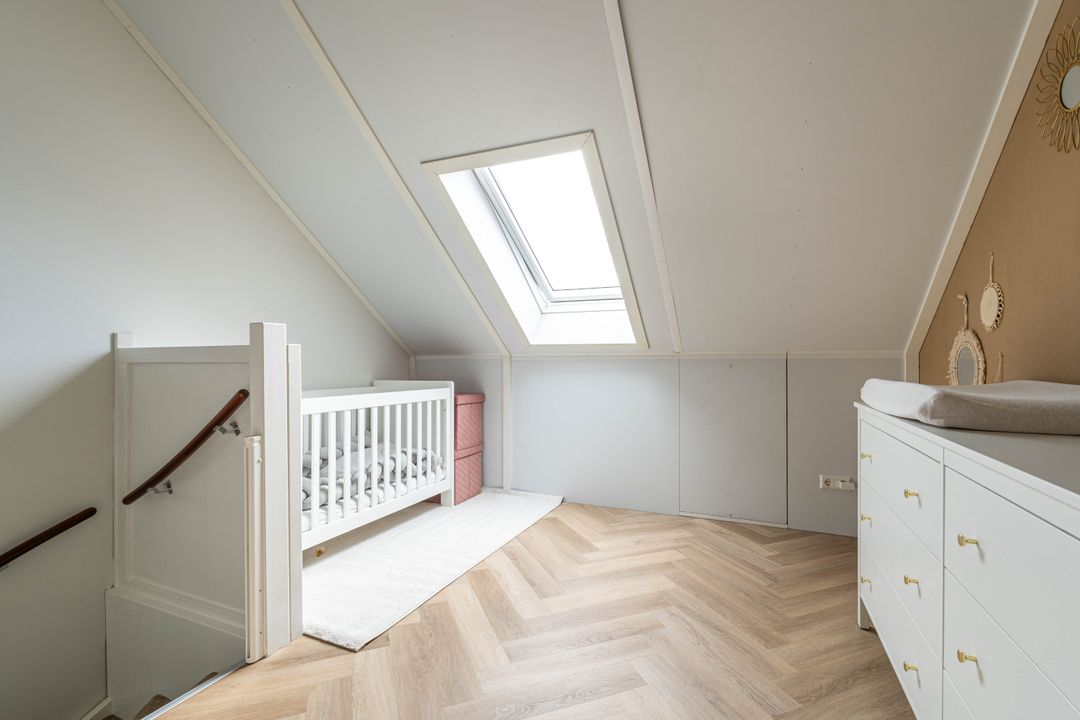 De overloop geeft toegang tot de badkamer, twee slaapkamers en de vaste trap naar zolder. De slaapkamers hebben door de grote ramen veel natuurlijke lichtinval. Ook deze verdieping is voorzien van vloerverwarming en- koeling.