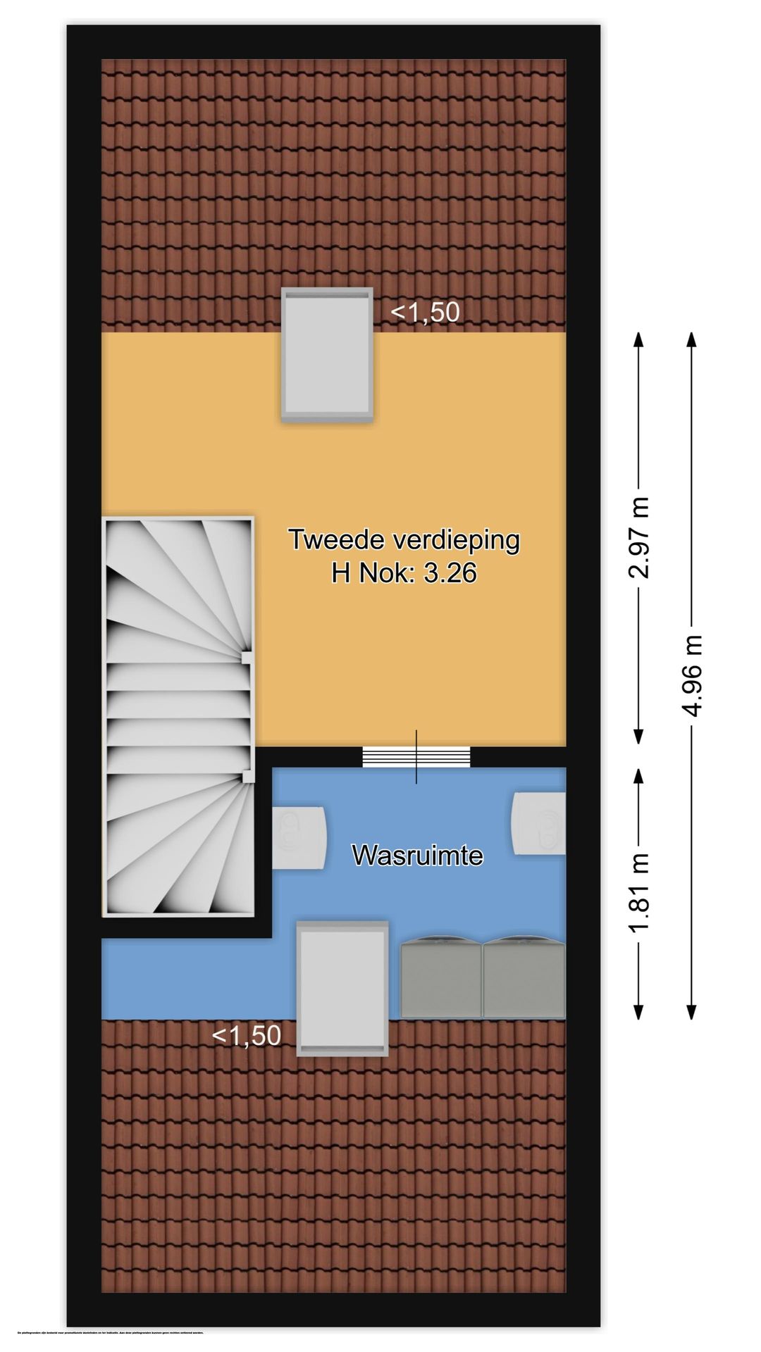 Op zolder vind je de derde slaapkamer en het washok. In deze separate is ruimte genoeg om de wasmachine en droger uit het zicht te plaatsen.
