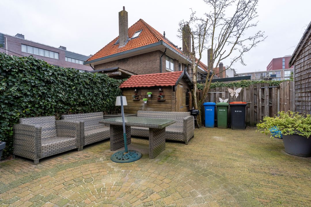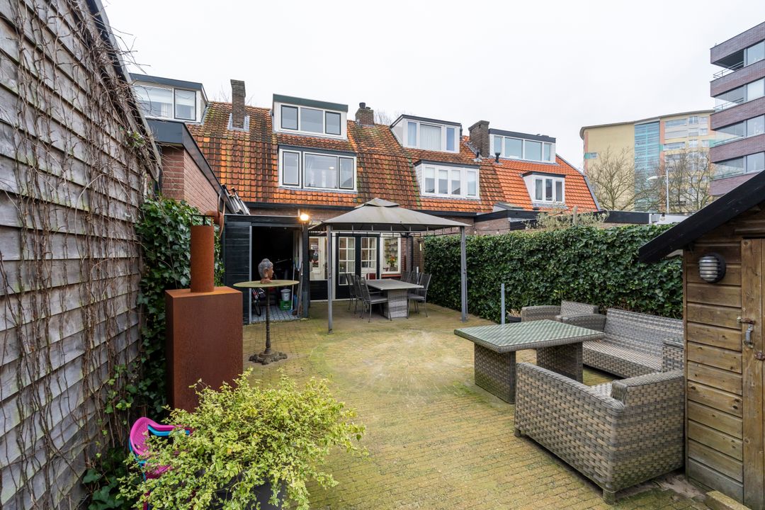 De achtertuin (66m2) is ruim 11 meter diep, hierdoor is er in de zomer altijd wel een plekje in de zon of schaduw te vinden. De achtertuin is voorzien van twee schuren en een achterom.