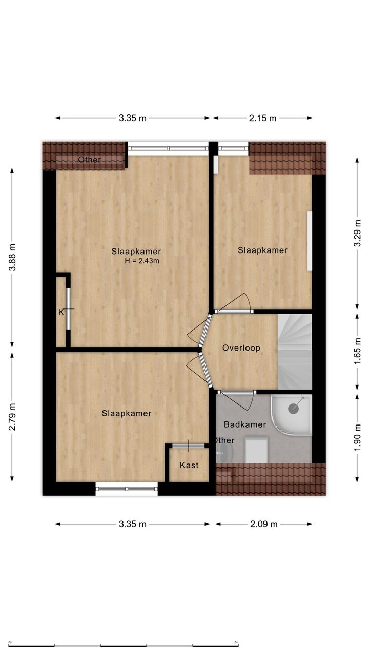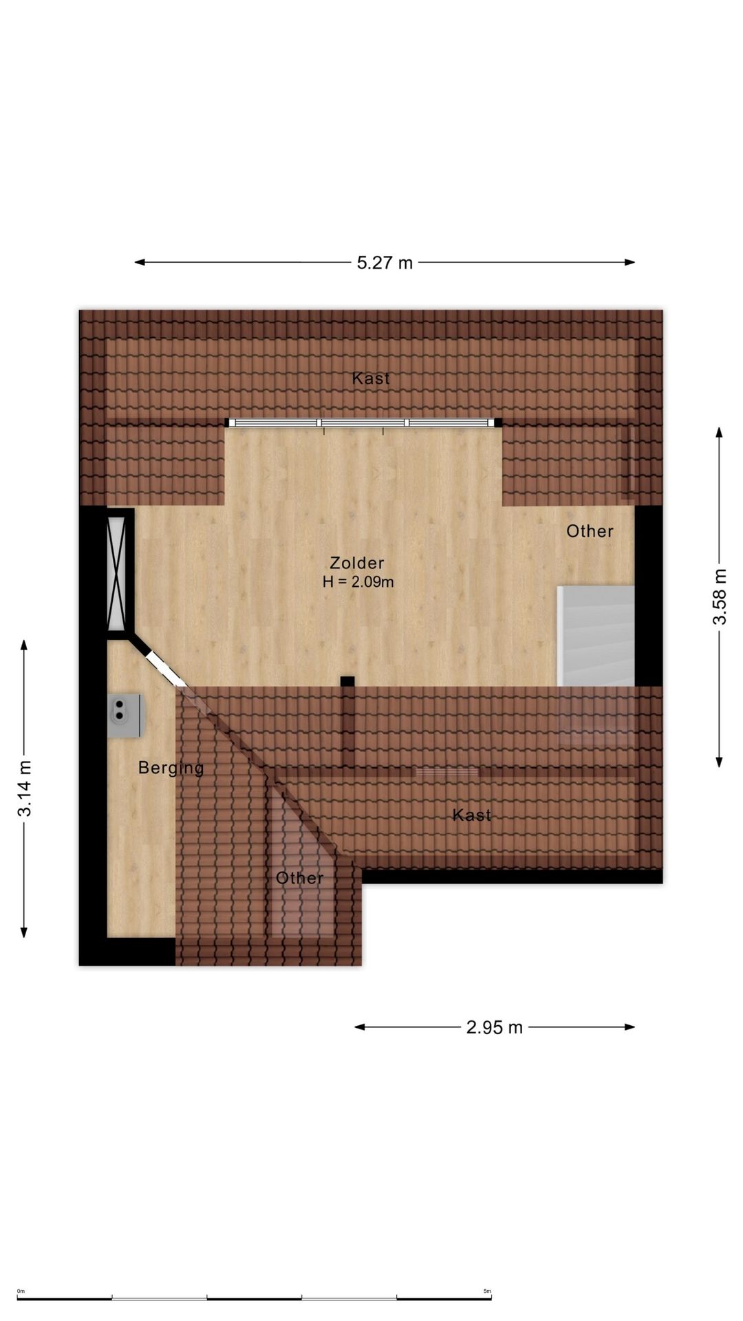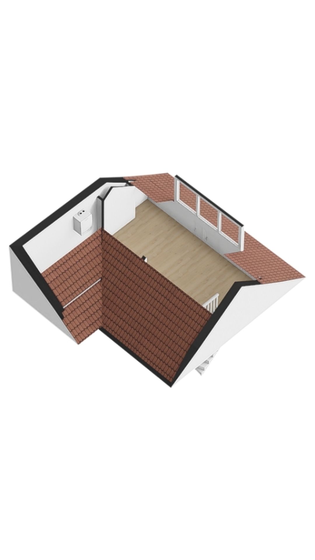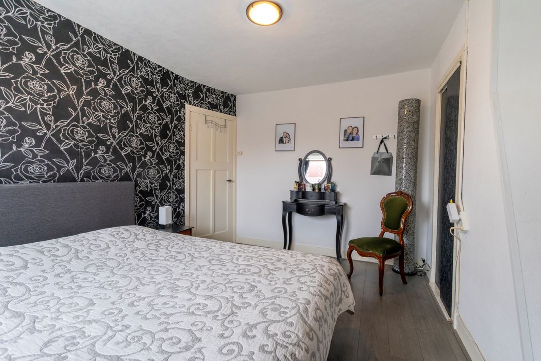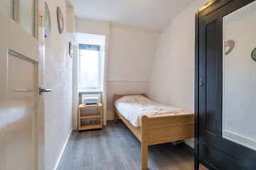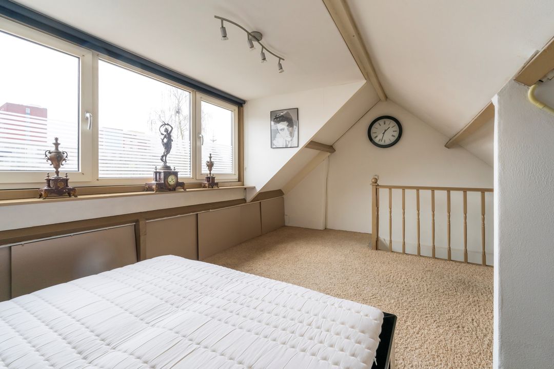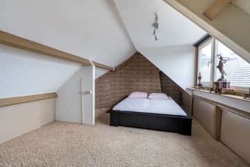 Via de vaste trap kom je op de zolderverdieping die aan de achterzijde voorzien is van een dakkapel. Hier is de vierde, ruime slapkamer gecreƫerd. Ook is hier nog veel bergruimte te vinden, gemakkelijk om bijvoorbeeld de kerst- of kampeerpullen uit het zicht op te bergen.