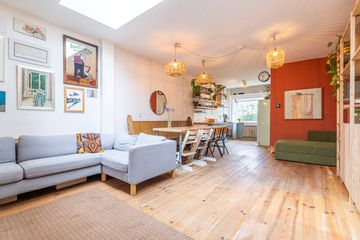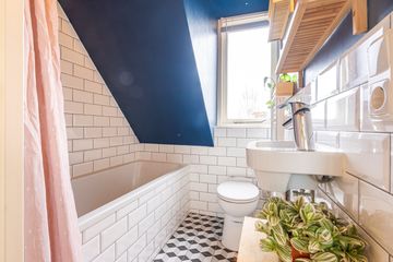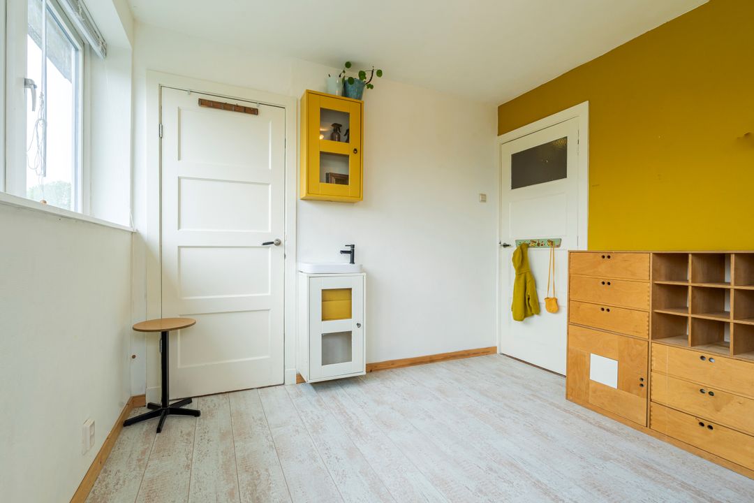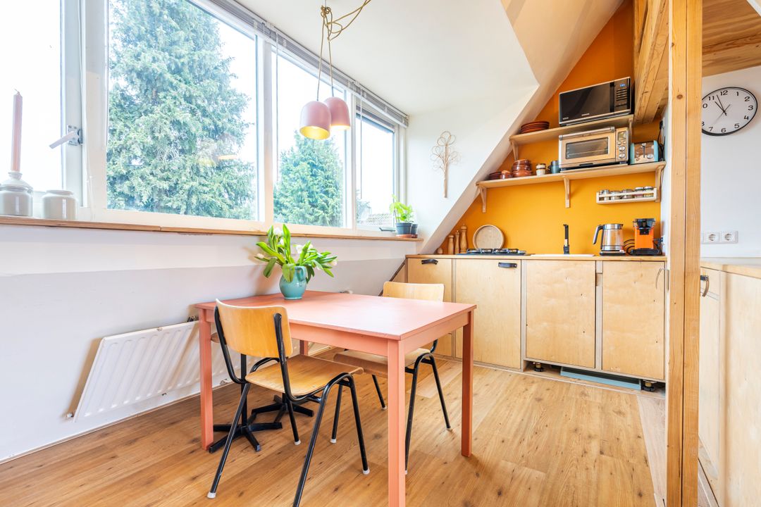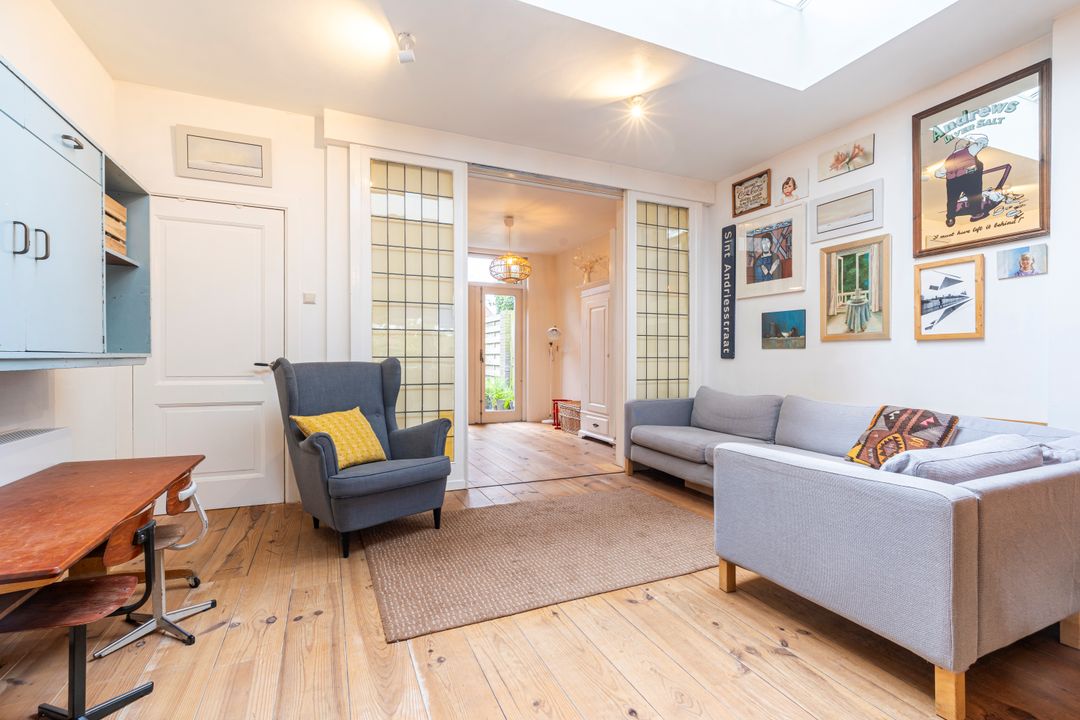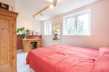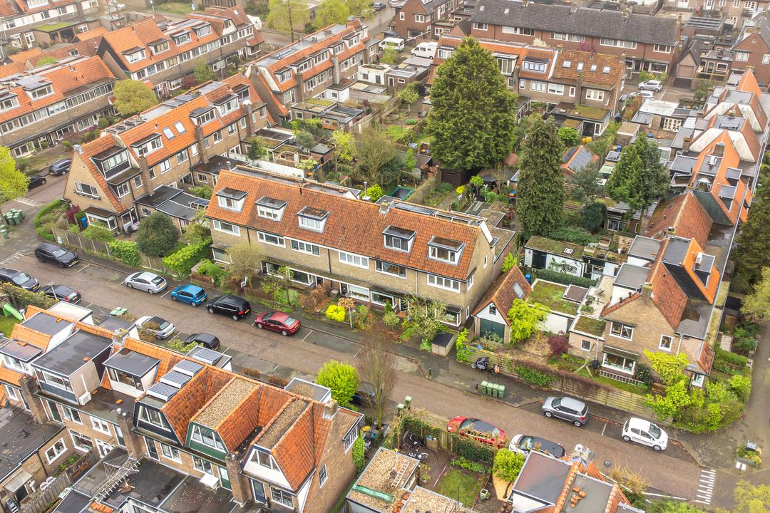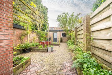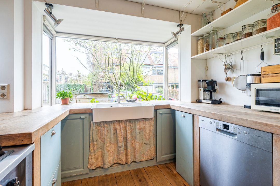 Deze sfeervolle jaren ’30 woning heeft drie slaapkamers (eenvoudig vier van te maken), twee badkamers en twee keukens. Ideaal voor gezinnen of om met meerdere generaties onder één dak te wonen! De woning is de afgelopen jaren flink verbouwd en verduurzaamd met een meer energiezuinige woning tot gevolg. De gezellige woonkamer heeft twee openslaande deuren richting de zonnige achtertuin van ca. 15 meter diep! Achterin de tuin staat een grote schuur met garagedeur, hierdoor kan je er gemakkelijk een motor in stallen. De zolder is in 2018 helemaal verbouwd tot appartement/ tiny house. Een erg prettige ruimte met veel licht. Het voldoet aan de voorwaarden voor een zelfstandige woonruimte met een eigen badkamer, toilet en keuken. De deur naar de zolder is afsluitbaar.