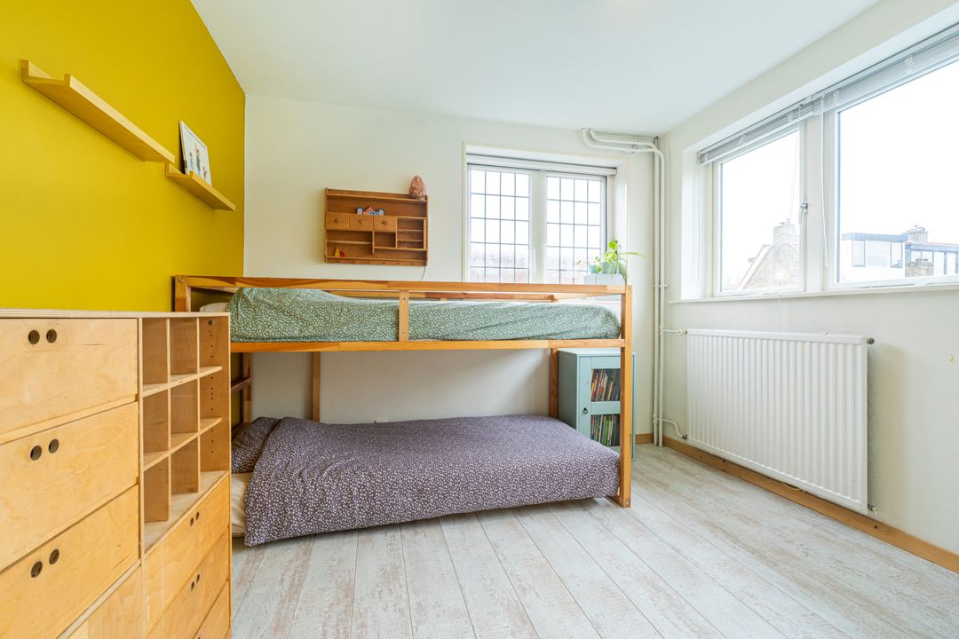 Op de overloop opnieuw de kenmerkende paneeldeuren die toegang bieden tot twee slaapkamers. Aan de achterzijde van het huis waren voorheen twee slaapkamers, maar de huidige bewoners hebben hier één van gemaakt. Dit is echter eenvoudig weer te herstellen. De oorspronkelijke deuren zijn nog aanwezig. Drie grote inbouwkasten zitten er op deze verdieping, genoeg bergruimte dus en geniet op deze verdieping van het zonlicht dat aan het eind van de dag door het glas in loodraam over de overloop schittert.