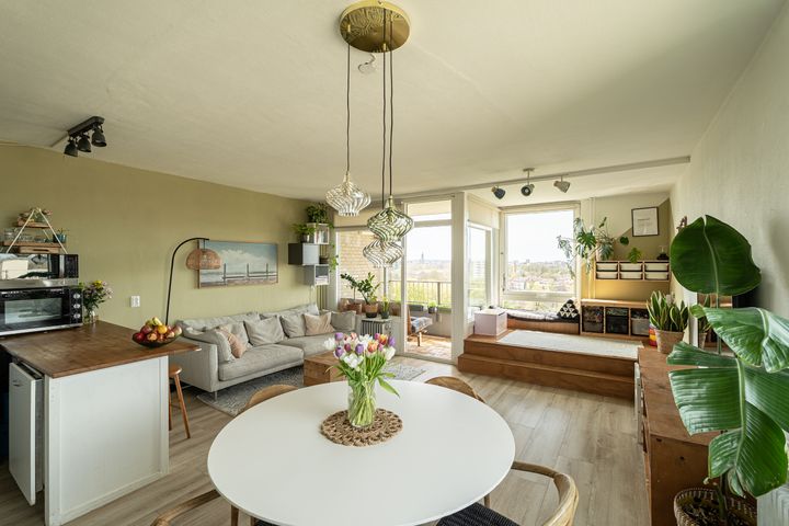 Bij binnenkomst valt meteen de warme en uitnodigende sfeer op. De woonkamer is heerlijk licht dankzij het extra raam in de zijgevel en biedt volop ruimte voor zowel een gezellige zithoek als een eethoek. Vanuit hier stap je zo het zonnige balkon van circa 4,2 m² op het zuidwesten op, waar je geniet van een vrij uitzicht en lange middagen in de zon.