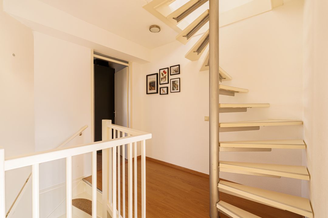 De tweede verdieping biedt opnieuw verrassend veel ruimte. De grote overloop wordt momenteel gebruikt als werkkamer, een fijne en erg lichte plek voor thuiswerken of studeren. Daarnaast is er een ruime slaapkamer aan de voorzijde.