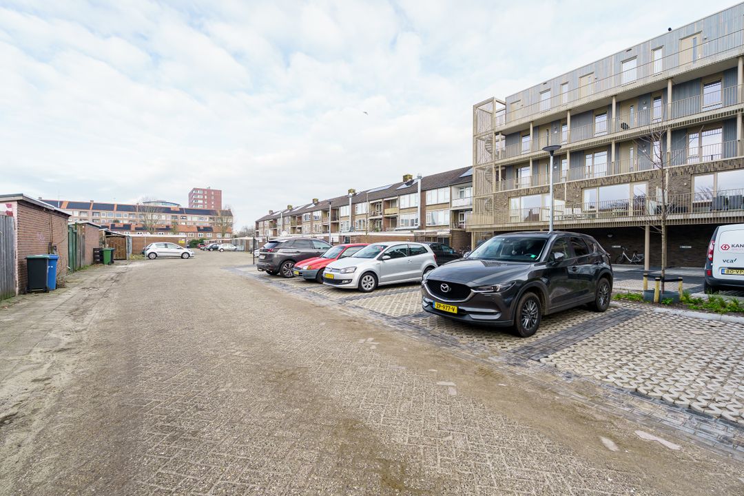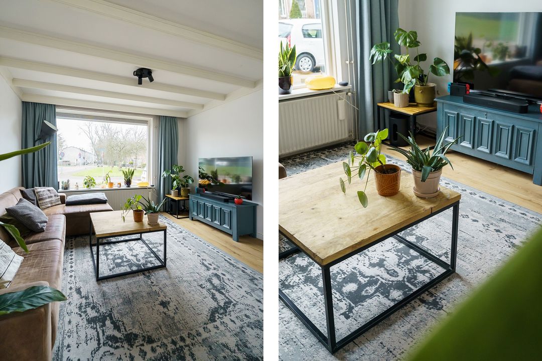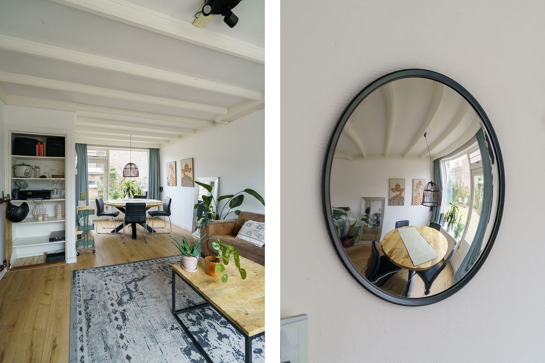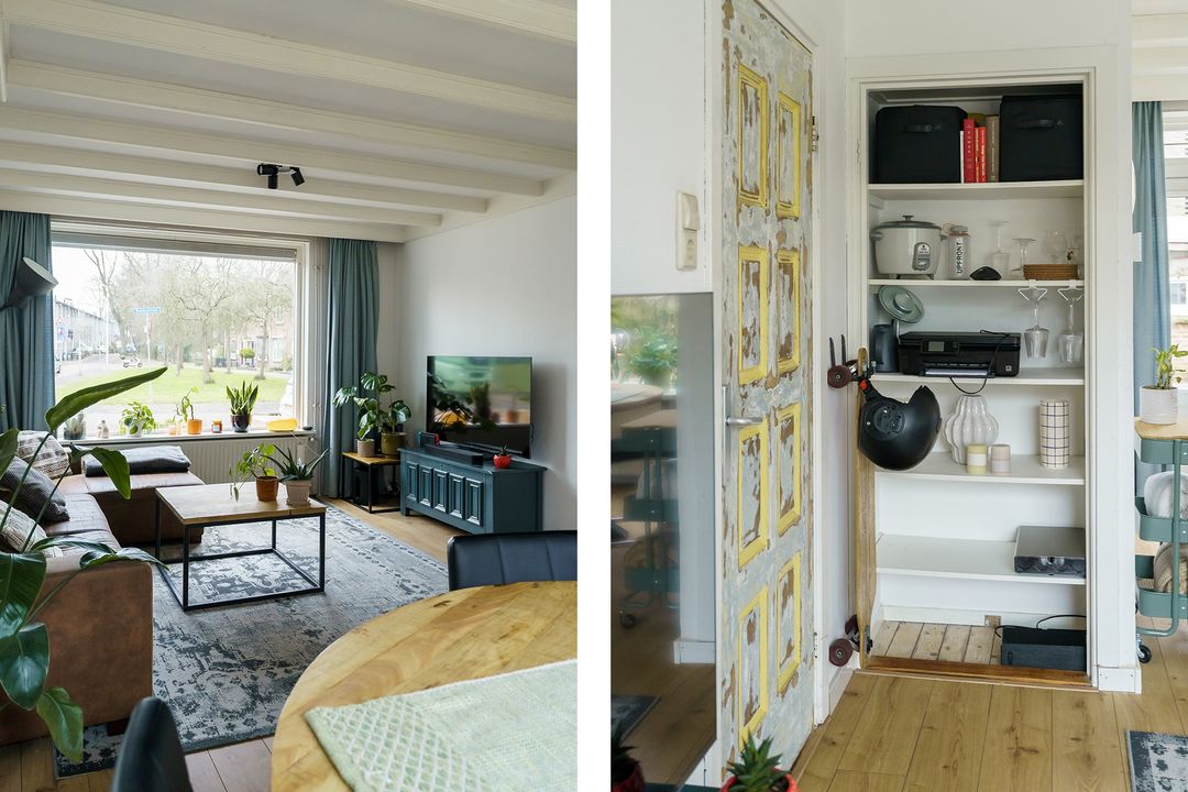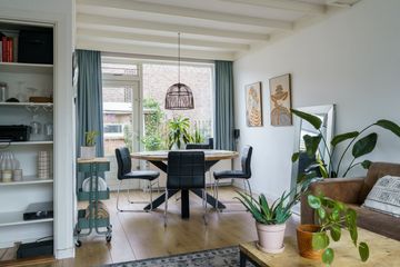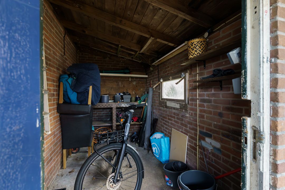 Met dit huis geniet je van extra veel buitenruimte: een voortuin, zijtuin en een diepe achtertuin op het oosten. Een deel is betegeld, waardoor je altijd een zonnig zitplekje vindt, terwijl het gras, de groene haag en de bomen zorgen voor een fijne, koele sfeer op warme dagen. Achterin de tuin staat een schuur van circa 6 m² met overkapping en via de achterom is de tuin makkelijk bereikbaar. En wil je de woning uitbouwen; door de diepte van de tuin blijft er volop buitenruimte over.