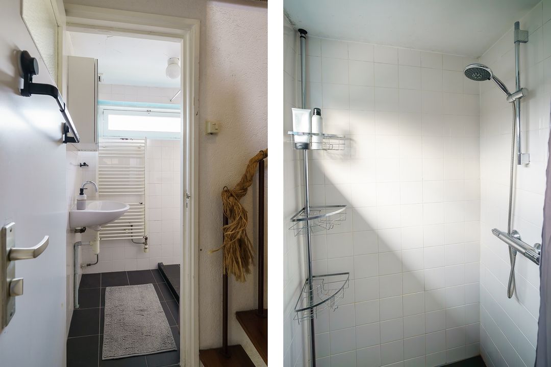 Op de eerste verdieping zijn drie slaapkamers van prettig formaat, waarvan twee aan de achterzijde met vaste kasten en één slaapkamer aan de voorzijde. De badkamer is compact en praktisch ingericht met een douche en wastafel.